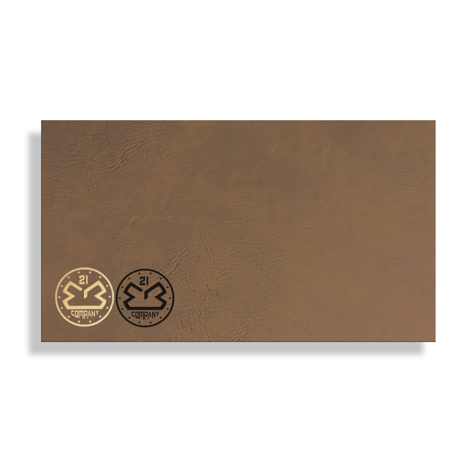 Laserhyde Deluxe TRIO™ Rustic Brown / Gold Leatherette Sheets are a high-quality matte finish sheet material for laser engraving with 1 main color and 2 engravable color layers. Our tri color leatherette with adhesive features our strong industry-leading Laserhyde thermoplastic adhesive, perfect for heat-sensitive materials like polyester fabrics and acrylic panels. Laserhyde Deluxe leatherette was engineered for water-resistance, with reinforced layers for added strength while remaining extremely flexible. With Laserhyde Deluxe Leatherette, your hat patches will be thicker, bolder, and stronger, making it the best choice for laser engraving businesses and custom hat projects.