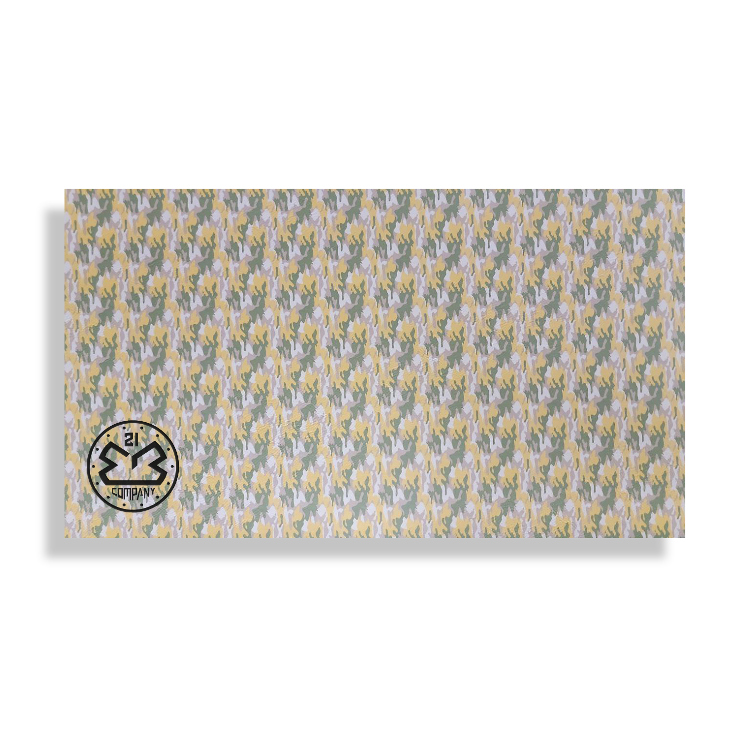 Our Laserhyde Deluxe™ Exclusive Yellow Camo Leatherette Sheets are a top-quality slightly textured simulated leather with a satin smooth finish designed for laser engraving. Our camo leatherette sheets with adhesive features our strong industry-leading Laserhyde thermoplastic low temp poly adhesive, perfect for heat-sensitive materials like polyester fabrics and acrylic panels. Laserhyde Deluxe leatherette was engineered for water-resistance, with reinforced layers for added strength while remaining extremely flexible. With Laserhyde Deluxe Leatherette, your hat patches will be thicker, bolder, and stronger, making it the best choice for laser engraving businesses and custom hat decorators.